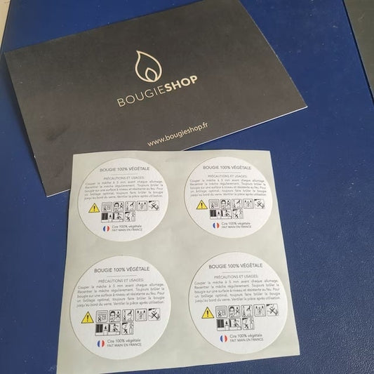 Etiquette ronde 45 mm de sécurité pour bougie - 100% végétale